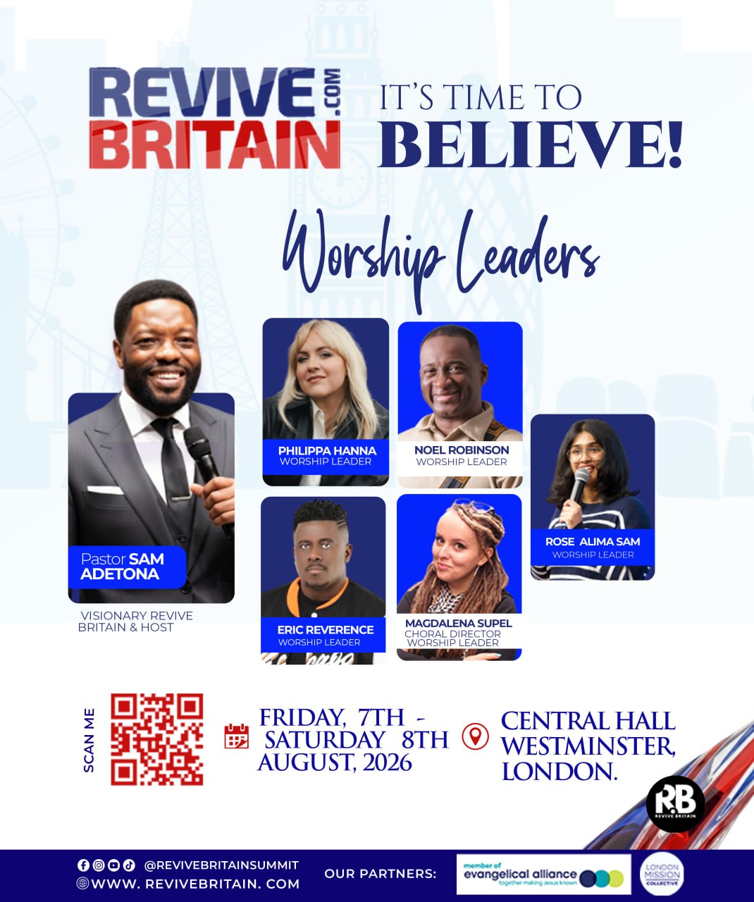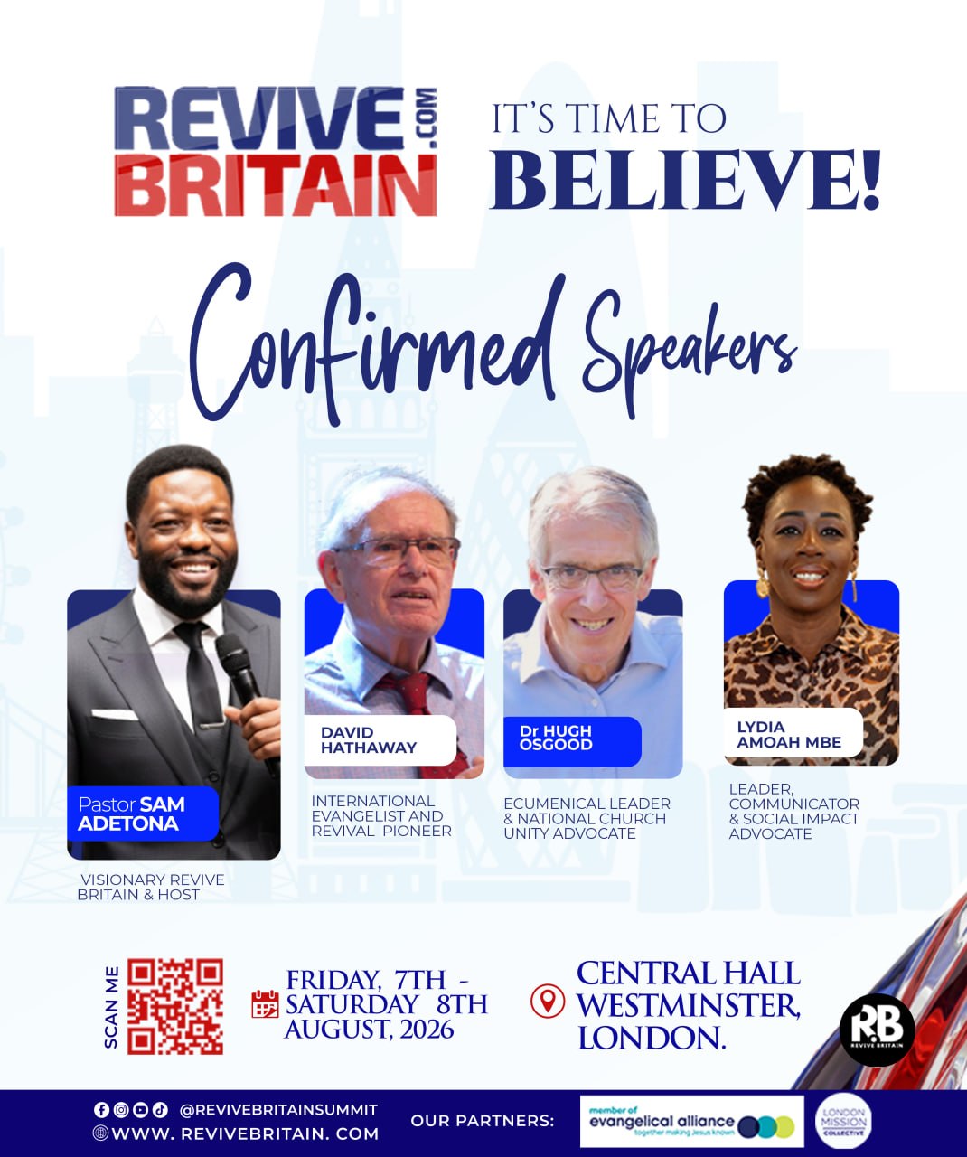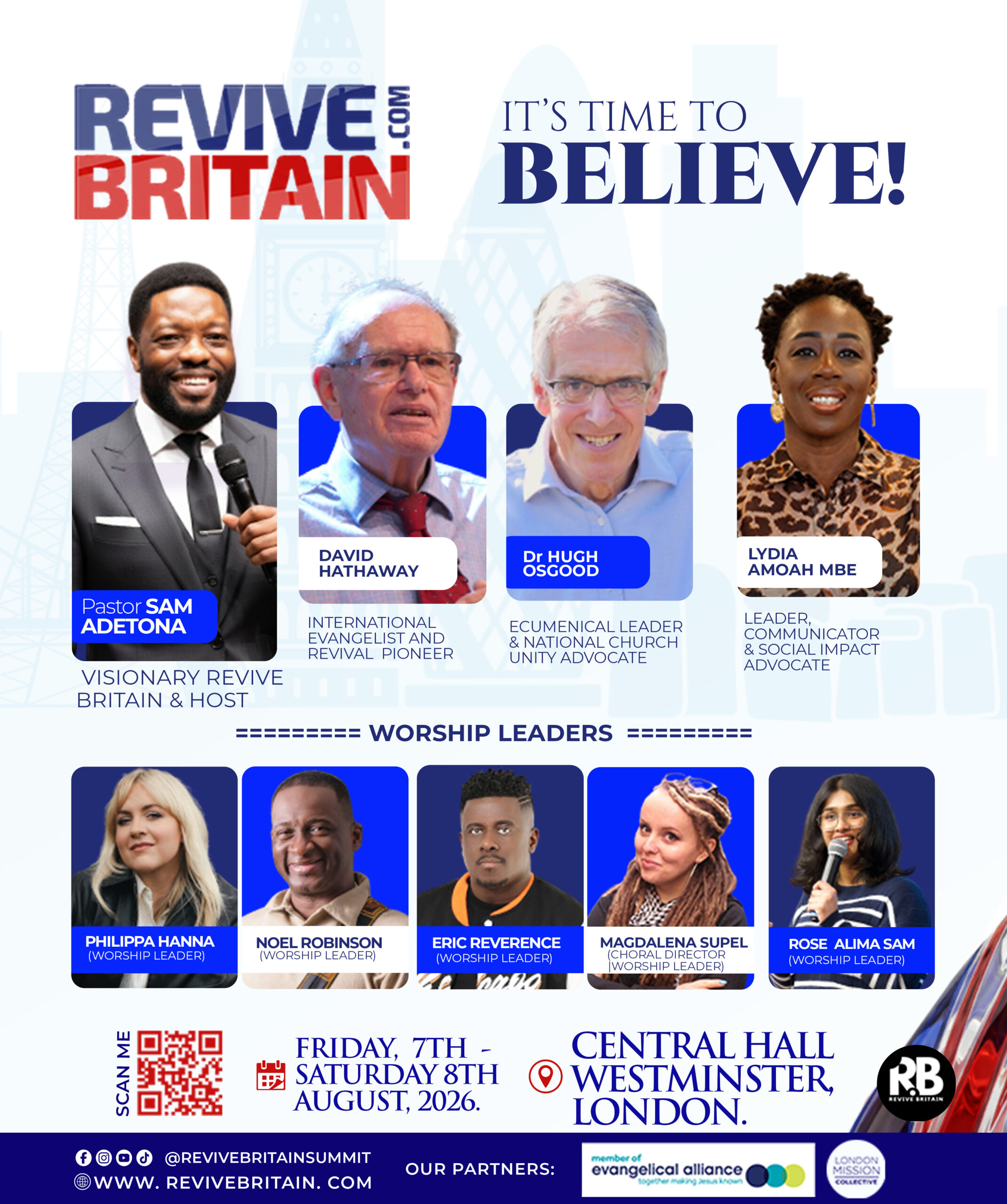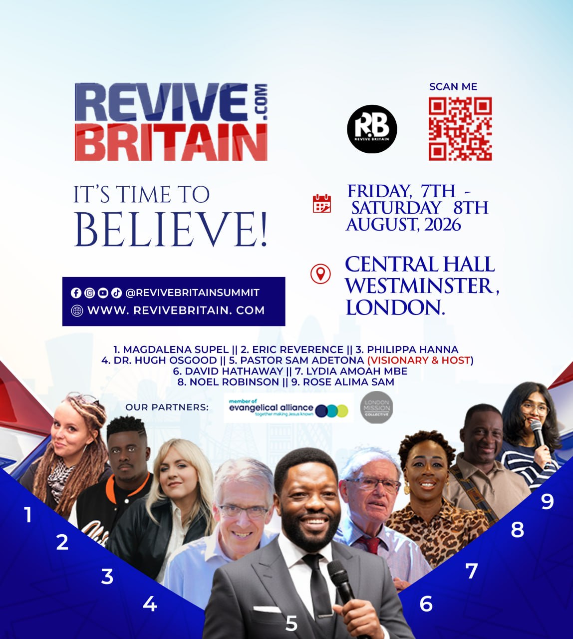 Revive Britain, founded by Pastor Sam Adetona of Harvest Mission, is an initiative focused on bringing community leaders, charity groups, and churches together through a series of events in the North, East, West and South of London, with the final gathering taking place in the heart of Westminster in February 2026.
